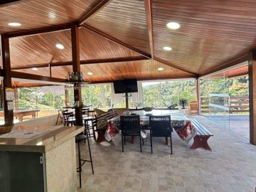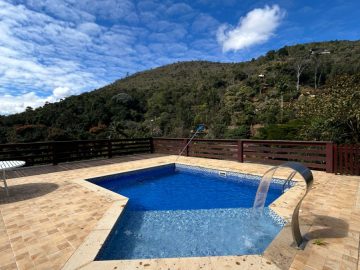 Encante-se com esta magnífica propriedade localizada em um dos endereços mais exclusivos da serra, cercada por natureza exuberante e com vista privilegiada para as montanhas.