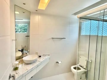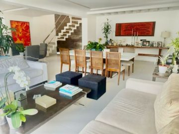 No primeiro pavimento um salão em 4 ambientes integrados (sala de estar, jantar, TV e escritório), lavabo, varanda, uma suíte com varanda, cozinha com armários planejados e banheiro de serviço. No segundo pavimento uma sala íntima, lavabo, suíte principal com closet e hidromassagem, jardim de inverno, pia e chuveiro duplos.