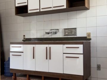 A cozinha é funcional e bem distribuída, com área de serviço independente. O imóvel ainda conta com dependência de empregada, que também pode ser utilizada como escritório ou espaço multiuso.