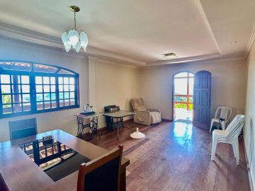 Segundo pavimento: ampla sala com varanda e vista espetacular, cozinha, área de serviço, despensa, quartinho e banheiro social.