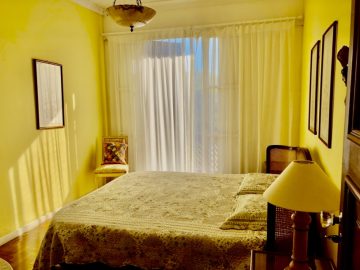 - todos quartos ensolarados , com armários, sacada e vista para as montanhas .
