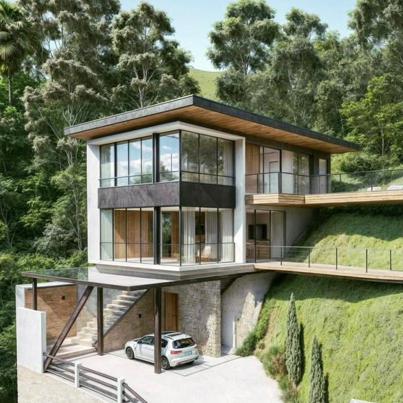 A casa é toda envidraçada, permitindo total integração com a natureza!